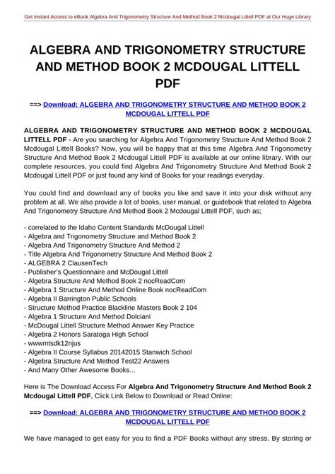 Online PDF Download Algebra and Trigonometry Structure and Method Book 2 PDF iBooks Google eBookstore